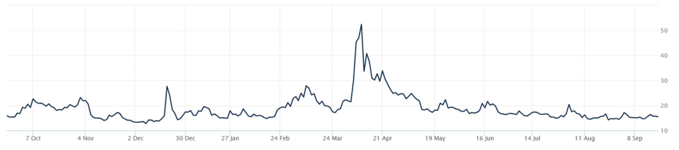 THE VOLATILITY INDEX (VIX) closed at closed at 15.45 this week, a 4.7% increase vs last week’s close of 14.76.