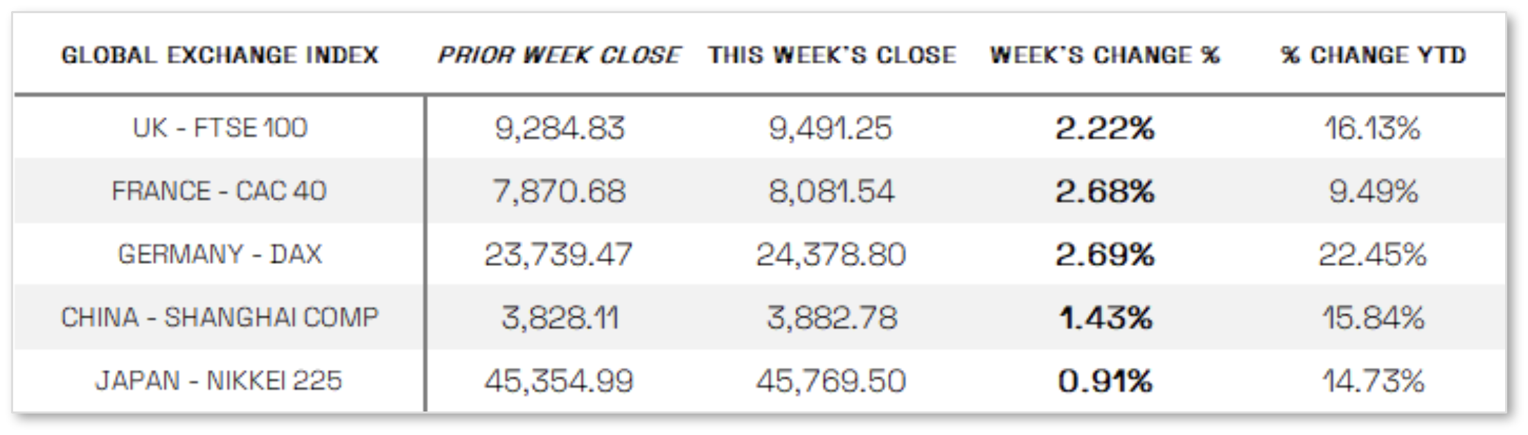 JAPAN: Japan’s stock markets delivered mixed results for the week, with the Nikkei 225 Index rising 0.91% while the broader TOPIX Index fell 1.82%, as technology shares advanced on optimism surrounding artificial intelligence investments. Despite lingering uncertainty over the outcome of the ruling Liberal Democratic Party’s presidential election scheduled for October 4, the yen strengthened to around JPY 147.3 per U.S. dollar from roughly JPY 149.5 the previous week, supported by a weaker greenback following the U.S. government shutdown.