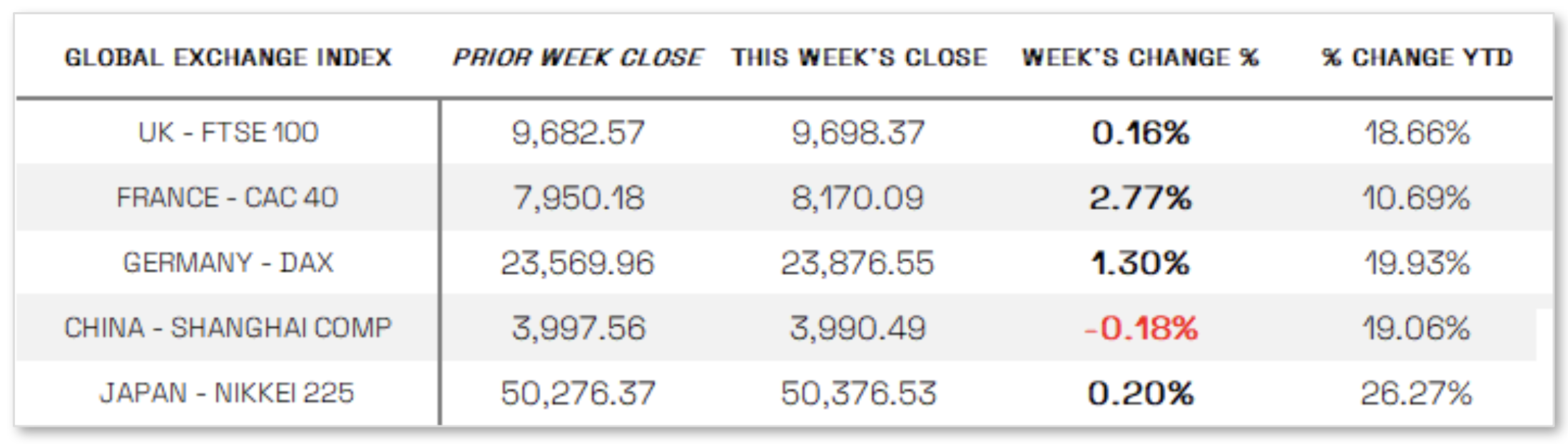 JAPAN: Japan’s stock markets advanced over the week, with the Nikkei 225 up 0.20% and the broader TOPIX rising 1.85%, supported by improved global sentiment following the end of the longest U.S. government shutdown, though concerns about stretched valuations for AI-related companies continued to weigh on Japan’s technology sector. Expectations of policy shifts under new Prime Minister Sanae Takaichi also influenced markets, as her administration signaled support for loose fiscal policy and a cautious approach by the Bank of Japan toward raising interest rates—factors that put downward pressure on the yen, which weakened to about JPY 154.6 per U.S. dollar from roughly JPY 153.4 the previous week. Takaichi has pushed for more flexible spending by reevaluating the government’s single-year fiscal discipline target and proposing a multi-year framework, arguing that responsible but aggressive fiscal measures are needed to bolster economic growth.