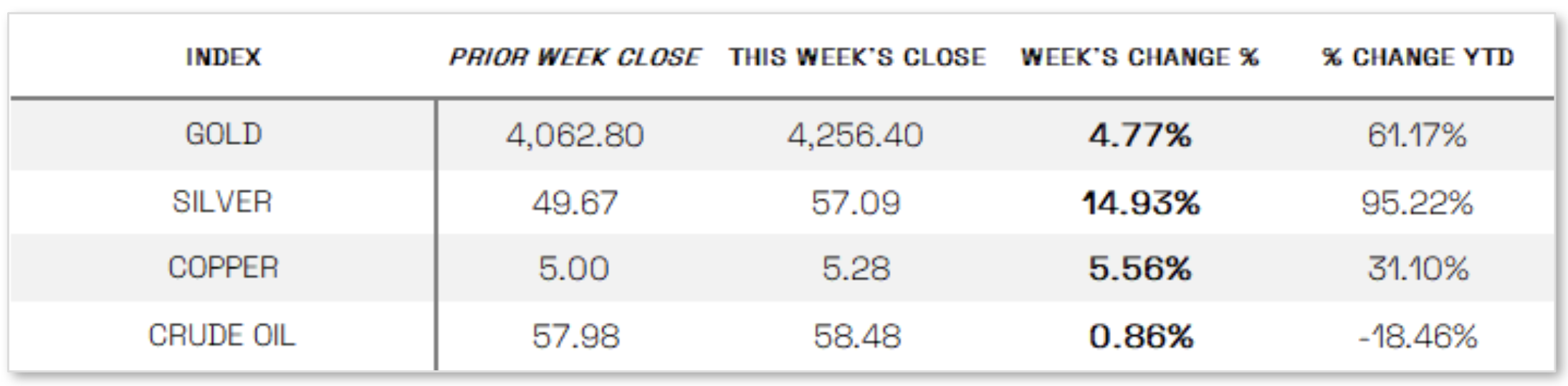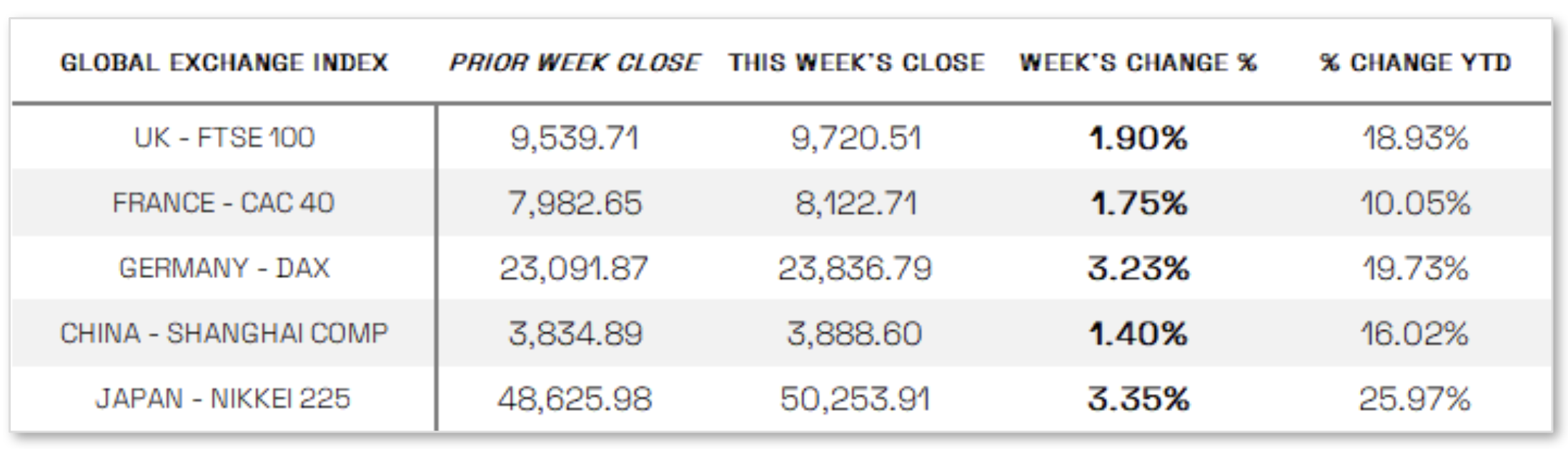 JAPAN: Japan’s stock markets posted solid gains for the week, with the Nikkei 225 rising 3.35% and the broader TOPIX Index up 2.45%, buoyed by soft U.S. economic data and dovish commentary from Federal Reserve officials that boosted hopes for further U.S. rate cuts. Japanese tech and AI-related stocks rebounded in line with a U.S. tech rally, recovering from the previous week’s sell-off driven by valuation concerns. On the economic front, Tokyo’s core inflation held steady at 2.8% year over year in November, remaining above the Bank of Japan’s 2% target and fueling speculation of a potential rate hike ahead. Additionally, stronger-than-expected October data—such as industrial production, retail sales, and stable unemployment—supported optimism about the resilience of Japan’s domestic economy and progress toward sustained inflation.