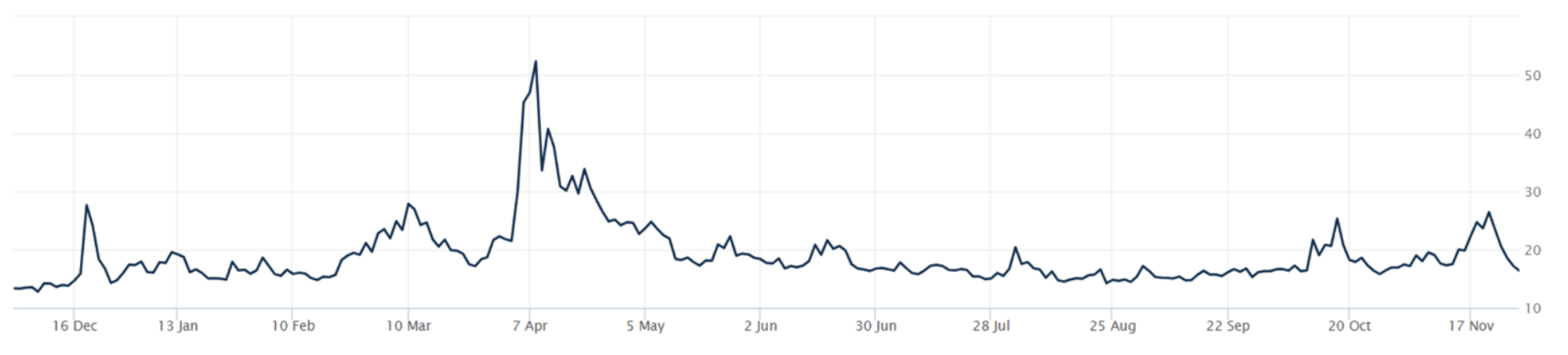 THE VOLATILITY INDEX (VIX) closed at 16.35 this week, a 30.2% decrease vs last week’s close of 23.43.